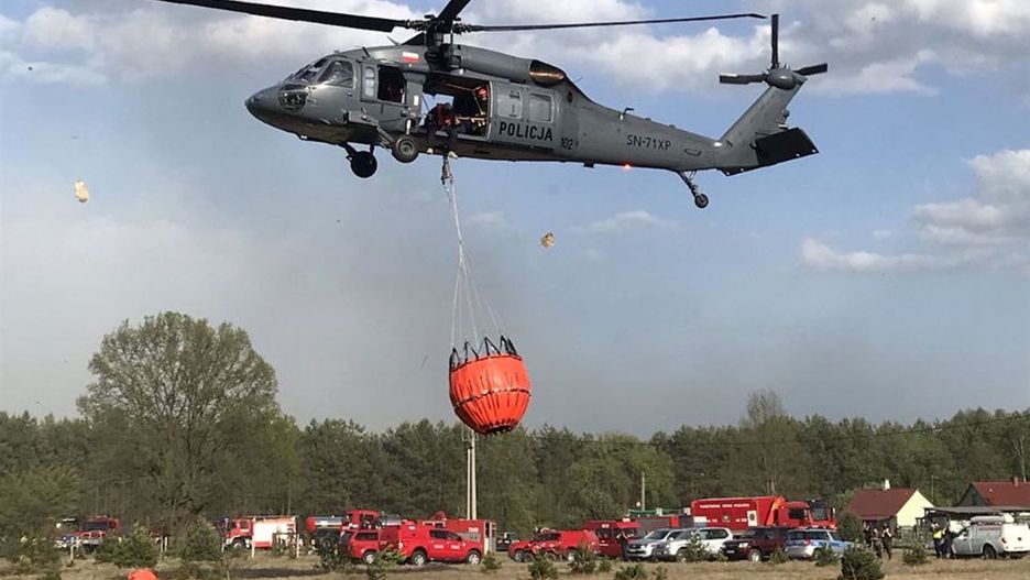 W okolicach miejscowości Prosna na Mazowszu pożar objął las o powierzchni co najmniej 100 hektarów. W gaszeniu ognia udział brały udział m.in. samolot gaśniczy Lasów Państwowych typu Dromader i policyjny Black Hawk.