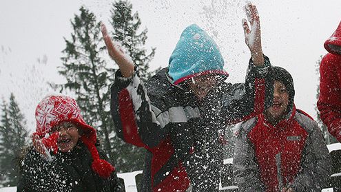 Dzieci cieszą się ze śniegu na Gubałówce, w Zakopanem.