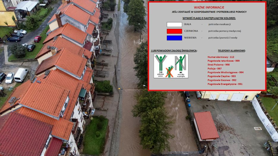 MSWiA opublikowało krótki instruktaż, jak zachować się w sytuacji zagrożenia powodziowego. Informuje również, jak dać znać służbom, że potrzebujemy pomocy w momencie, gdy pozostaliśmy w swoich domach, a woda odcięła nas od świata.