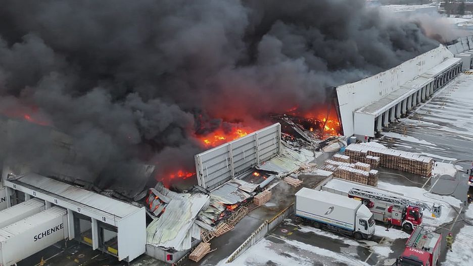 Strażacy otrzymali zgłoszenie o godz. 6.36 o pożarze budynku magazynowego. Obiekt to hala poznańskiego oddziału firmy logistycznej DB Schenker.
