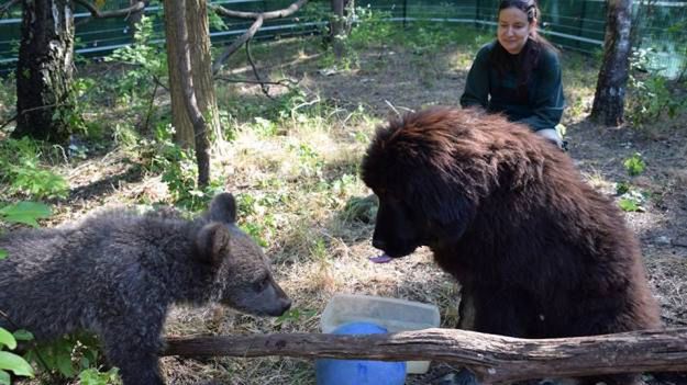 Mała niedźwiedzica z poznańskiego zoo będzie wychowywać się z... psem
