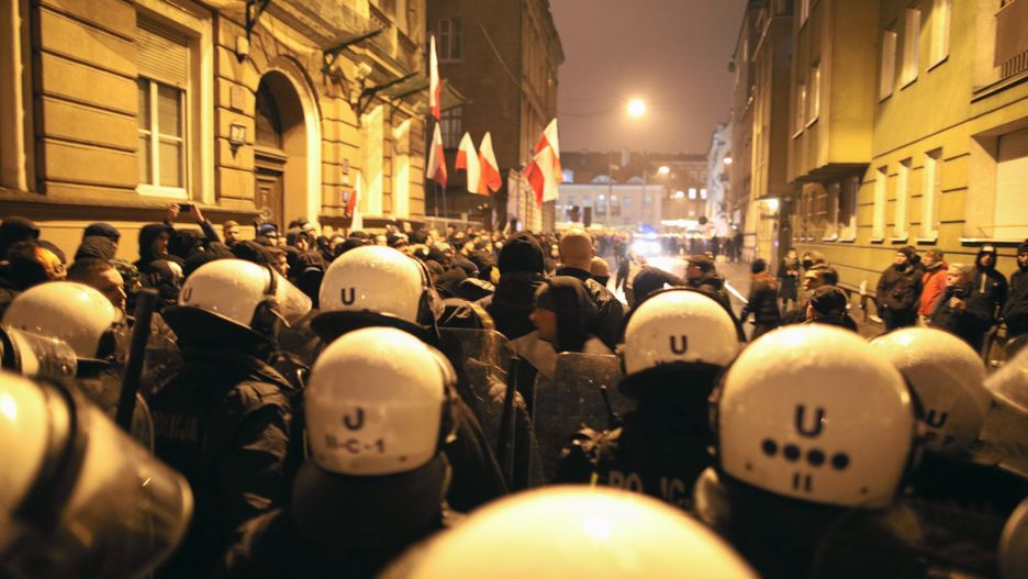 Antyfaszyści zapowiedzieli demonstracje. Skrzyknęli się także narodowcy. W obawie przed starciem obu grup policja zamknęła dla ruchu ulicę Strzałkową, Rybaki i Długą. Obie grupy oddzieliły dziesiątki policjantów. Po obu stronach zebrało się około 450-500 osób. Obyło się bez poważnych incydentów, choć centrum Poznania wyglądało w środę wieczorem jak twierdza.