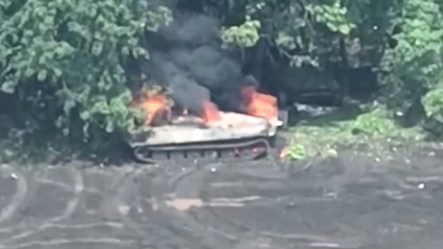 Ostra wymiana ognia artyleryjskiego pod Ługańskiem. Ukraińcy wyśledzili Rosjan na polach za miastem, dzięki wykorzystaniu drona zwiadowczego. Okazało się, że byli to żołnierze, czekający w zaroślach na swoich towarzyszy, którzy niedaleko prowadzili ostrzał artyleryjski z moździerza. Reakcja obrońców Kijowa była natychmiastowa i po poznaniu dokładnych współrzędnych padł rozkaz o uderzeniu w pozycję wroga. Na Twitterze pojawiło się nagranie z momentu ataku i widać na nim, że pocisk artyleryjski wbija się w rosyjski transporter MT-LB, a pochwili dochodzi do eksplozji. W momencie uderzenia dwóch Rosjan znajdywało się tuż obok swojego pojazdu. Jak widać na nagraniu, cudem uniknęli śmierci i zdołali uciec w zarośla. Jeden z nich nie był w stanie wstać na nogi i poruszał się na kolanach. Z wozu okupantów nic nie zostało, co sprawiło, że ich ucieczka z tego miejsca na pewno nie była łatwa.
