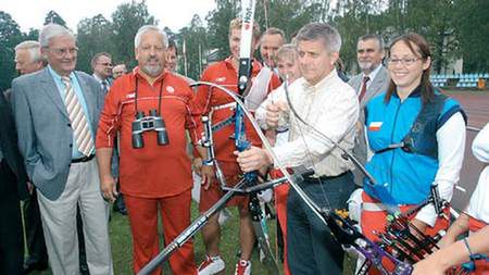 Wizytę z Spale Belka rozpoczął od zwiedzania ośrodka. Na głównym stadionie spotkał się z polskimi łucznikami - Iwoną Marcinkiewicz, zgierzanką Justyną Mospinek, Małgorzatą Sobieraj i trenerem - Jackiem Prociem. Premier w asyście sportowców trzy razy strzelił z łuku.