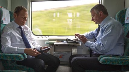 Premier Donald Tusk w pociągu relacji Poznań - Wrocław