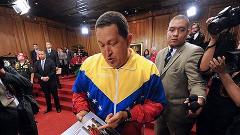 Prezydent Wenezueli Hugo Chavez na pierwszym po wyborach występie w TV postanowił założyć... dres. Pochwalił się spotkaniem z Fidelem Castro, pokazując zdjęcie jako dowód bliskiej zażyłości z rewolucjonistą i byłym przywódcą Kuby.