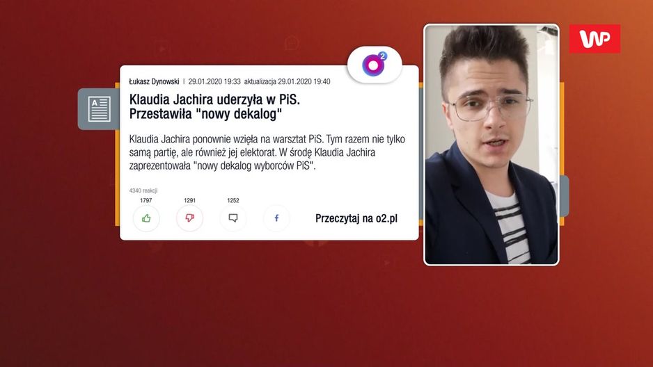 Należąca do klubu PO Klaudia Jachira wciąż szokuje, zaprezentowała "Nowy dekalog wyborców PiS". Małgorzata Kidawa-Błońska w programie WP #Newsroom przyznała, że "nie lubi takich zachowań i ich nie pochwala". Jednocześnie zaznaczyła, że Jachira to "nie pierwsza i nie ostatnia posłanka, z którą są problemy".