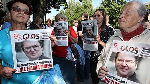 Andrzej Poczobut w drodze do sądu w Grodnie - zdjęcie z 28 czerwca 2011.