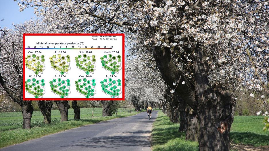 W drugiej połowie analizowanego okresu, szczególnie w dniach 23–25 kwietnia, temperatura minimalna spadnie miejscami do 1–5 stopni, a lokalnie mogą wystąpić przymrozki, zwłaszcza w kotlinach oraz na północy i wschodzie kraju.