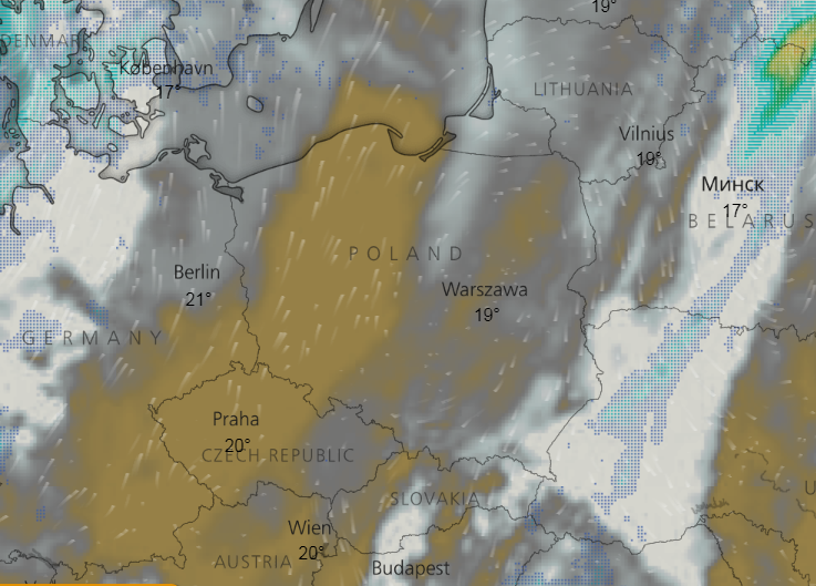 Podobną prognozę ma dla nas norweski portal yr.no. Poniedziałek ma być raczej słoneczny, termometry wskazywać mają od 18 st. C. w Krakowie i Łodzi, do 20-21 st. C. we Wrocławiu i Poznaniu. We wtorek prognoza ma być podobna - Norwegowie nie przewidują opadów deszczu.