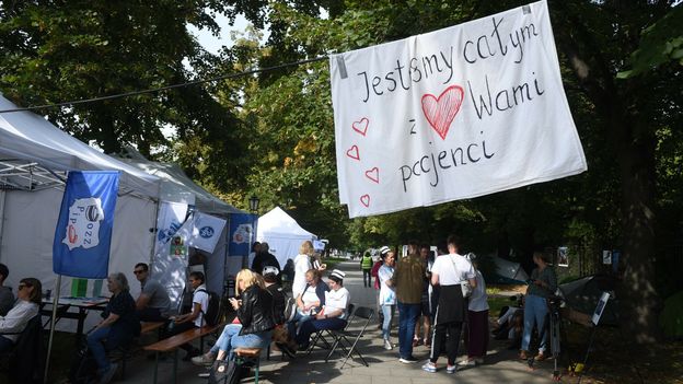 Od soboty w Warszawie trwa protest medyków. Demonstranci rozbili przed Kancelarią Prezesa Rady Ministrów tzw. białe miasteczko 2.0. Na sztandarach mają m.in. podniesienie płac, zatrudnienie dodatkowego personelu, a także poprawienie warunków pracy. Wśród protestujących są przedstawiciele całe środowiska medycznego. Jak zapowiadają, będą kontestować do skutku. - Bardzo nam zależy, aby wybrzmiało to, że przede wszystkim została przekroczona granica bezpieczeństwa nas jako społeczeństwa, nas jako pacjentów - tłumaczyła w rozmowie z WP Ewa Janiuk, wiceprezes Naczelnej Rady Pielęgniarek i Położnych. - Żebyśmy mogli rozmawiać realnie o tym, czego oczekujemy, musi być pan premier. Szanujemy pana ministra Niedzielskiego, ale decyzje w tym kraju podejmuje premier. Jeżeli nie będzie pana premiera, nie będzie rozmów - dodaje z kolei Mariola Łodzińska, wiceprezes Naczelnej Rady Pielęgniarek i Położnych.