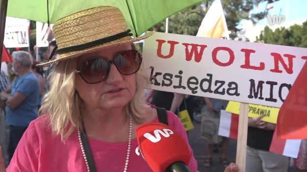 "Zamknąć Bodnara, uwolnić księdza" - skandowali uczestnicy protestu PiS w obronie ks. Michała Olszewskiego. Duchowny i przedstawiciel Fundacji Profeto jest jednym z dziesięciu podejrzanych w śledztwie Prokuratury Krajowej, które dotyczy wydatkowania środków z Funduszu Sprawiedliwości. - To jest znęcanie się, poniżanie - mówił reporterowi WP jeden z uczestników protestu. - Prawo jest prawem i dobrze, żeby obowiązywało wszystkich, a bandytów i złodziei trzeba zamykać, a nie księdza. Jak mógł prać pieniądze, jak one były czyste? - pytał inny mężczyzna. - To jest skierowane przeciwko ministrowi Ziobro - mówiła kolejna uczestniczka protestu. Kobieta zarzuciła też "kłamstwo z salcesonem". - Jak można uwierzyć w taką durnotę, że ksiądz uzdrawia ludzi salcesonem? Zrobiono z tego, nie wiem jak to nazwać, ale to jest obrzydliwe, to jest wstrętne. To był żart, sarkazm - tłumaczyła kobieta.
