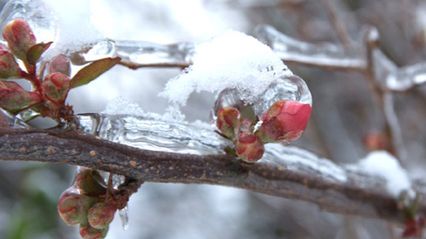 Na zdjęciu: w miejscowości Chrapanów (woj. świętokrzyskie) zakwitła Pigwa (rajska jabłoń).