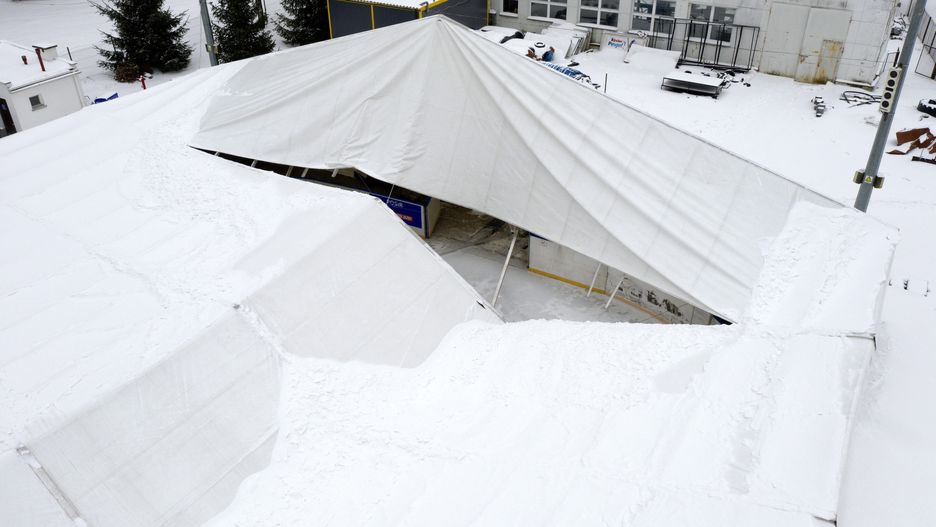 Przemyśl. Zawalił się dach nad lodowiskiem. Wszystko przez intensywne opady