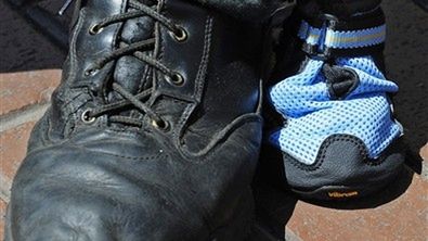 / 7Niemiecka policja podczas akcji, gdzie spodziewana jest duża ilość rozbitego szkła, używa dla swoich psów specjalnego ochronnego obuwia