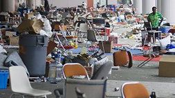 Setki autobusów oraz śmigłowce ewakuowały lokatorów tych prowizorycznych schronień do miejscowego portu lotniczego. Stamtąd odlecieli samolotami transportowymi do nowych miejsc pobytu w Luizjanie i sąsiednim Teksasie.