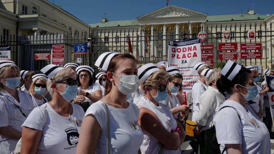 - 62 lata to średnia wieku umieralności pielęgniarek. Jeśli pójdzie tak dalej, to prawie 300 szpitali zniknie z mapy Polski, bo nie będzie tam kadry pielęgniarsko-położniczej - powiedziała przedstawicielka protestujących wojewodzie mazowieckiemu.