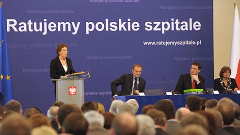 Premier Donald Tusk razem z minister zdrowia Ewą Kopacz przedstawili samorządowcom założenia rządowego programu „Ratujemy polskie szpitale", który został dziś zaakceptowany przez Radę Ministrów. Program zapewni jednostkom samorządu terytorialnego realną pomoc w przekształcaniu samodzielnych publicznych zakładów opieki zdrowotnej w spółki prawa handlowego. – Projekt ratowania polskich szpitali będzie dla rządu priorytetem niezależnie od trwającego kryzysu – zapewniał szef rządu.