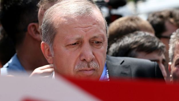 Przemawiając w Stambule na pogrzebie ofiar piątkowych wydarzeń prezydent oświadczył, że pucz, jaki podjęło kierowane przez Gulena "ugrupowanie terrorystyczne", został udaremniony z woli narodu.