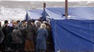 Czeczeńcy w kolejce do namiotu gdzie można głosować w referendum (PAP)