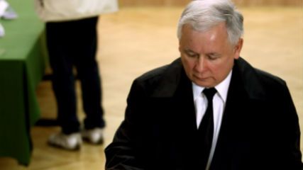 Na zdjęciu: prezes PiS Jarosław Kaczyński głosuje w Szkole Głównej Służby Pożarniczej.