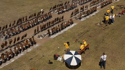 Już o 6 rano rozpoczęły się przygotowania do bicia rekordu Guinnessa w największym grillowaniu na świecie. 80 mistrzów kuchni przybyło do miejscowości General Pico w Argentynie, by przyrządzić rekordowe ilości mięsa. Ponad 13 ton mięsa zostało przygotowane dla około 30 tysięcy osób. Mięso piekło się na 950 rożnach, a do jego grillowania użyto 25 tysięcy kilogramów drewna opałowego. Argentyńczycy zdołali pobić rekord ustanowiony przez Urugwajczyków w 2008 roku. Wówczas przygotowano 12 mięsa.