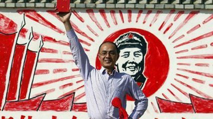 Na zdjęciu: turysta prezentuje "Czerwoną Książeczkę". W muzeum w Yinchuan, stylizowanym na obóz odosobnienia z czasów Rewolucji Kulturalnej.