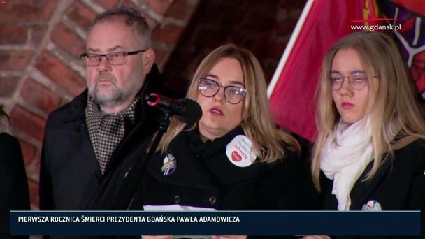 13 stycznia mija rok od śmiertelnego ataku na Pawła Adamowicza. - Nie możemy się dać zastraszyć terrorowi, zło jest zawsze w mniejszości - mówiła w poniedziałek żona prezydenta Gdańska. Magdalena Adamowicz odsłoniła pamiątkową tablicę im. jej ś.p. męża przy Targu Węglowym.