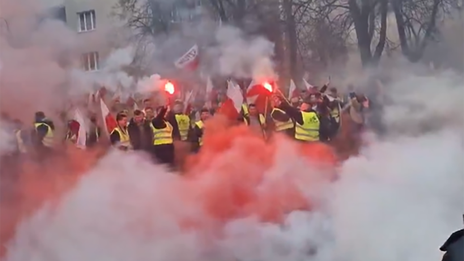 Przed Sejmem, dwóch rolników weszło na ciągnik ze słomy ustawiony na traktorze. Mężczyźni rozwiesili baner z niecenzuralnym słowem, uderzający w Ukraińców. Reakcja organizatorów była natychmiastowa. Panowie zostali wykluczeni z protestu, a baner natychmiast ściągnięto.