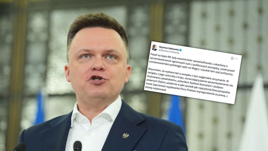 "Poseł na Sejm RP, były wiceminister sprawiedliwości, oskarżony o sprzeniewierzenie ogromnych sum z publicznych pieniędzy, uciekł przed postanowieniem polskiego sądu na Węgry i uzyskał tam azyl polityczny. Rozumiem, że wybiera też w związku z tym węgierskie utrzymanie" - napisał w mediach społecznościowych marszałek Szymon Hołownia.