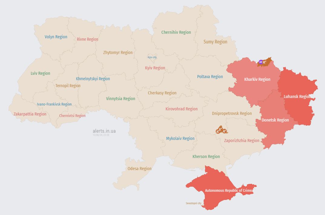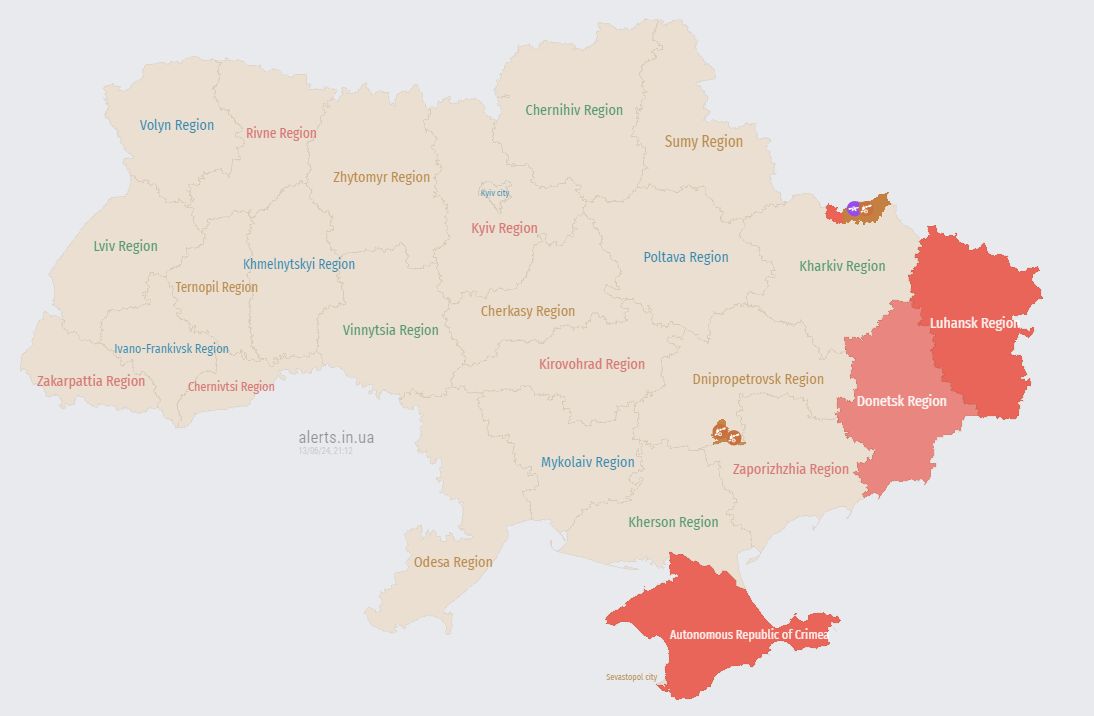 Aktualna mapa alarmów przeciwlotniczych w Ukrainie.