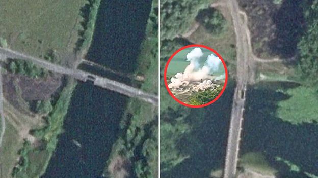Pociski HIMARS znów sprawiły poważne problemy Rosjanom. Agencja Reutera właśnie udostępniła najnowsze zdjęcia satelitarne firmy Planet Labs Inc., na których widać kompletnie zniszczone mosty nad rzeką Sejm w obwodzie kurskim w Rosji. Na fotografiach z kosmosu można zauważyć zniszczone mosty w miejscowościach Karyż i Zwannoje, które do tej pory służyły armii Putina do zaopatrywania swoich wojsk w Ukrainie. Najnowsze zdjęcia satelitarne są jasnym dowodem skutecznej operacji Ukraińców, której Rosjanie się nie wyprą. Łącznie siły ukraińskie do 19 sierpnia zniszczyły wszystkie trzy mosty w regionie, odcinając okupantów od tras zaopatrzeniowych. Rosjanie walczą z wojskami ukraińskimi w obwodzie kurskim od 6 sierpnia, kiedy to tysiące żołnierzy Kijowa przedarło się przez zachodnią granicę Rosji, co wprawiło Kreml w poważne tarapaty. Ukraińcy nie zamierzają zawracać i dalej prowadzą walki w tym regionie, co potwierdza również nagranie udostępnione przez agencję AP, na których widać krwawą wymianę ognia pod Kurskiem.
