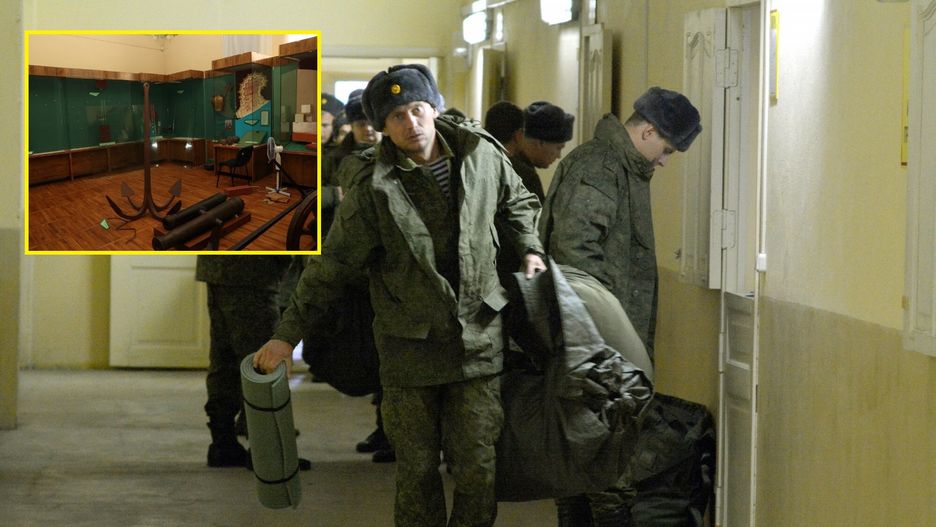 Żołnierze Władimira Putina zdemolowali też wnętrza budynku. W sieci opublikowano zdjęcia, na których widać powybijane przez Rosjan szyby i całkowicie puste gabloty.