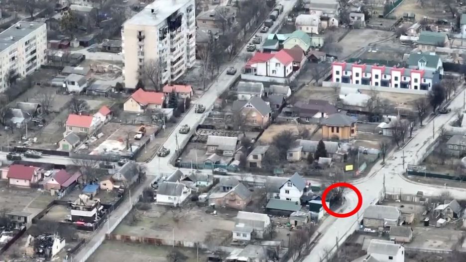 Nagranie przedstawiające ostrzelanie cywila w Buczy przeanalizowała brytyjska telewizja Sky News. Na wideo z drona widoczny jest rowerzysta, który porusza się pustą ulicą Jabłońską. Gdy mężczyzna zbliża się do skrzyżowania, decyduje się zejść z roweru.