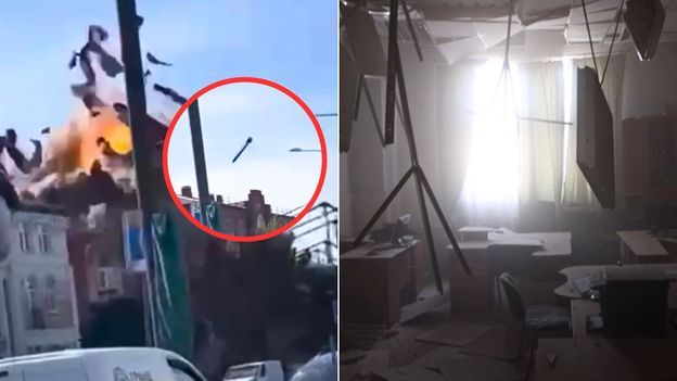 Widać na nich moment uderzenia drona w dach uniwersytetu, który rozrywa go na kawałki, powodując eksplozję. Po chwili nad miejscem ataku unosiły się kłęby siwego dymu, a część ludzi w panice ruszyła do ucieczki.