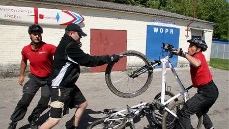 Jednym z elementów szkoleń jest sztuka obezwładniania przestępców za pomocą roweru.
