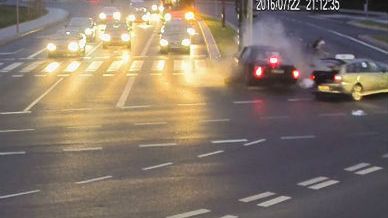 Miał czerwone światło, wjechał rozpędzonym lexusem na skrzyżowanie i zderzył się z taksówką. Ten wypadek ocalił życie rowerzyście, który przejeżdżał w tym czasie przez jezdnię.