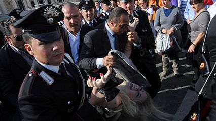 W sobotę roznegliżowane działaczki Femenu pojawiły się w Rzymie podczas manifestacji centrolewicowej opozycyjnej Partii Demokratycznej na Lateranie. Ukrainki miały transparenty z hasłami przeciwko polityce premiera Włoch Silvio Berlusconiego.