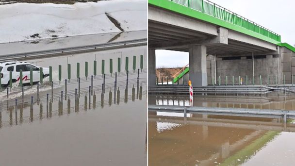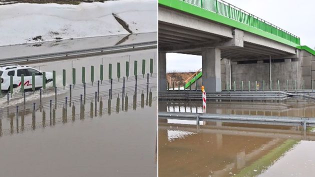 Na ujęciach z S6 między Karwicami a Sławnem można zauważyć dłuższy odcinek ekspresówki kompletnie zalany wodami roztopowymi. S6 to jedna z kluczowych tras w północnej Polsce, łącząca m.in. Szczecin z Gdańskiem. Jej zablokowanie powoduje poważne utrudnienia w ruchu tranzytowym i lokalnym.