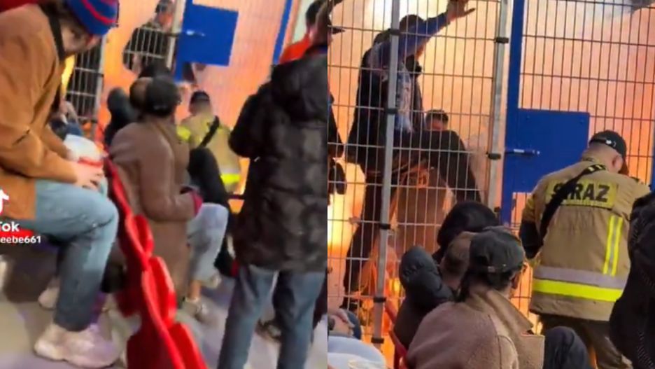 Strażak z gaśnicą gasił flarę, która spadła na plecaki, a w tym czasie rozwścieczeni kibice uderzali w kraty. Nagranie z nowego stadionu Odry Opole obiegło media społecznościowe. To nie jedyny popis, jaki dali w piątek kibice z Niemiec.