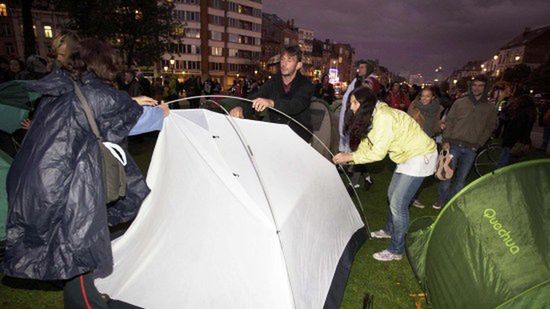 Blisko 150 członków ruchu "oburzonych" z Hiszpanii, Francji i Holandii rozbiło obóz w sobotę wieczorem w Brukseli. Władze nie wydały na to zgody; burmistrz należącego do brukselskiej aglomeracji Koekelberga oferuje demonstrantom pusty budynek uniwersytecki.