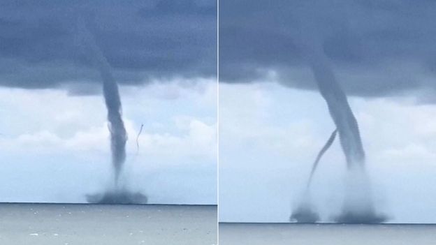 Kamera w smartfonie turysty nagrała dwie trąby wodne, które utworzyły się w niedzielne popołudnie nad wodami delty rzeki Pad. Z początku widać dwie trąby, które szybko przemieszczały się po tafli wody.