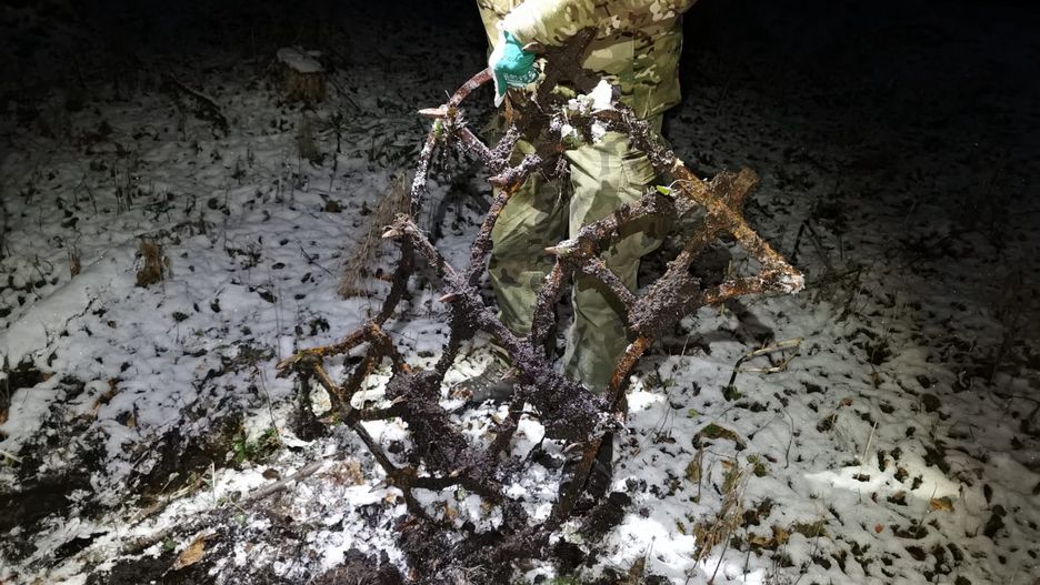- Sprawdzaliśmy te miejsca pod kątem zastawionych pułapek. Poruszając się w podmokłym terenie, często przeskakując na bardziej suche fragmenty, sam naskoczyłem na ostrze. Na szczęście gruba podeszwa ześliznęła się z grotu i nic mi się nie stało - relacjonuje Jacek Lasota ze Straży Leśnej w Nadleśnictwie Strzyżów.