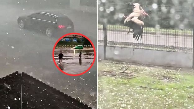 Powalone drzewa, urwane dachy i drogi jak rzeki. W środę przez Śląsk przeszła potężna nawałnica. Dzięki uprzejmości kont na Facebooku - "Obserwatorzy MeteoŚląsk I Opolskie - Alerty i komunikaty pogodowe", "Bielskie Drogi" i "InfoPogoda - Śląskie" udostępniamy nagrania mieszkańców. Materiały z Raciborza, Żor czy Pstrążnej ukazują siłę żywiołu. Ulewie towarzyszył silny wiatr, a miejscami także opady gradu. W pewny momencie widać martwą rodzinę bocianów, których gniazdo wyrwał wiatr. W Pszczynie częściowo zawalił się dach popularnego dyskontu. Zastępca jednostki ratowniczo-gaśniczej w Raciborzu kpt. Mateusz Musioł poinformował, że większość interwencji w jego powiecie to usuwanie skutków silnych wiatrów, w tym wyjazdy do zerwanych dachów z budynków mieszkalnych. Takich przypadków było w powiecie co najmniej kilka. - Jest bardzo dużo zalanych posesji, bardzo dużo powalonych drzew - zrelacjonował kpt. Musioł. Łącznie w powiecie rybnickim straż otrzymała zgłoszenia o 25 uszkodzonych dachach w budynkach jednorodzinnych i gospodarczych, w tym 15 poważnie uszkodzonych dachach. Ponadto łamane przez wiatr drzewa blokowały drogi na terenie całego powiatu. Nie tylko na Śląsku doszło do załamania pogody. Burze przechodziły też w nocy nad Małopolską - m.in. nad powiatem oświęcimskim. Na Mazowszu, w wyniku przejścia burzy, ucierpiał Otwock. Straż pożarna musi usuwać z ulic miasta połamane gałęzie i wypompowywać wodę stojącą na ulicach. Łamane drzewa uszkadzały stojące na ulicach samochody.