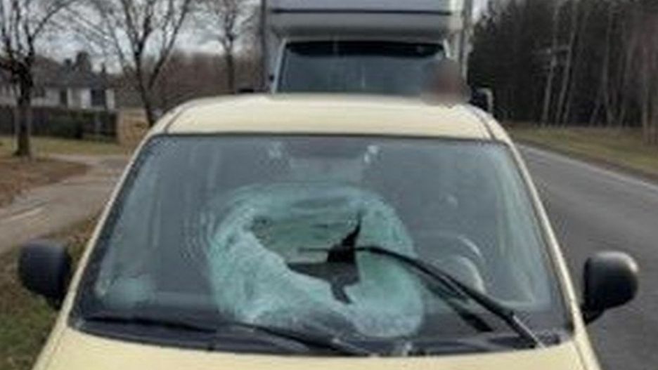 Jak ustalili mundurowi, 47-letni kierowca iveco, nie przygotował odpowiednio swojego auta do jazdy, w wyniku czego z dachu jego pojazdu odczepił się lód i spadł na jadącego fiata, uszkadzając jego przednią szybę.