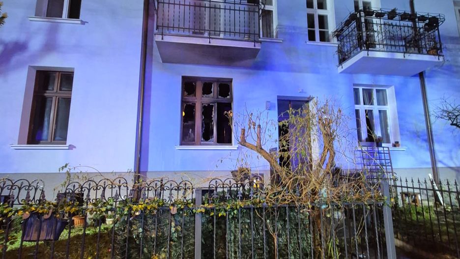 Strażacy zastali rozwinięty pożar mieszkania na parterze oraz silne zadymienie na klatce schodowej. W momencie dojazdu pierwszych zastępów PSP na zewnątrz znajdował się ranny mężczyzna, który samodzielnie opuścił palący się lokal.