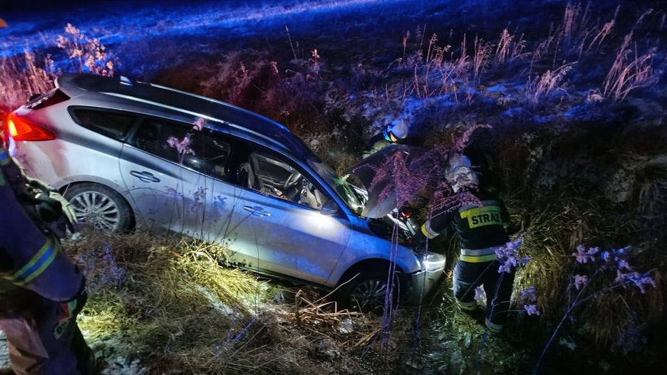 Droga była oblodzona, na zakręcie pojechał prosto. Auto wpadło do rowu