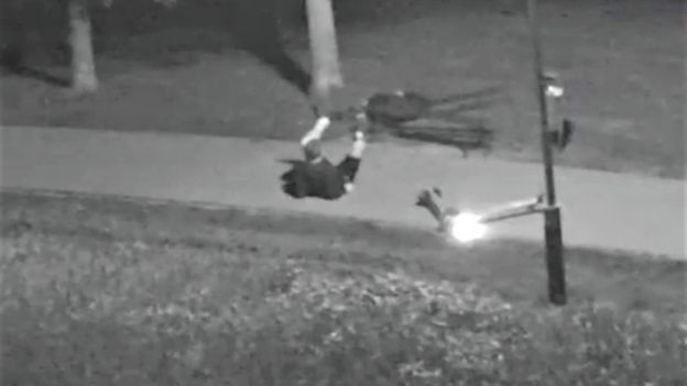 Straż Miejska ze Świdnika opublikowała w mediach społecznościowych nagranie, na którym widać groźne zdarzenie z udziałem dwóch mężczyzn jadących na jednej hulajnodze elektrycznej. W pewnym momencie pasażer spada z jednośladu na ławkę, łamiąc ją. Kierujący hulajnogą upada na chodnik i zamurowany patrzy się na swojego kolegę. Policjanci jeszcze tej nocy "rozliczyli" amatorów nocnej jazdy w parach na hulajnodze. "Prezentujemy krótki film z monitoringu miejskiego, który niech będzie przestrogą dla tych, którzy przewożą pasażera, dodatkowo w porze nocnej. Tym razem obyło się bez poważniejszych obrażeń, a sprawca wykroczenia został rozliczony przez naszych kolegów ze świdnickiej Policji. Kompletnemu zniszczeniu uległa ławka" - napisała Straż Miejska ze Świdnika. Aktualne przepisy mówią, że hulajnogi elektryczne są przeznaczone do transportu tylko jednej osoby i nie można nimi przewozić zwierząt ani towarów. Nie można również ciągnąć czy holować innych pojazdów. Zabronione jest korzystanie w trakcie jazdy z telefonu komórkowego, co tyczy się też jazdy pod wpływem alkoholu, za co grozi utrata prawa jazdy, tak jak w przypadku prowadzenia auta.