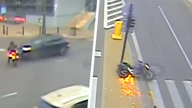 Niebezpieczny wypadek w Lublinie. Młoda kobieta kierująca motocyklem nie zastosowała się do zakazu skrętu w lewo i doprowadziła do zderzenia z osobowym oplem - podał portal lublin112.pl. Nagranie z tego zdarzenia zarejestrowały kamery monitoringu, a lubelska policja udostępniła wideo ku przestrodze. Do wypadku doszło na skrzyżowaniu ul. Lipowej, ul. Narutowicza i al. Piłsudskiego. Kierująca motocyklem nie zastosowała się do przepisów drogowych i skręciła w lewo na zakazie. Mężczyzna mówił policji, że zauważył jednoślad w ostatniej chwili, przez co nie wyhamował na czas. Następstwem tego był groźnie wyglądający wypadek, w wyniku którego kobieta odbija się od maski i upada na asfalt, podczas gdy jej motocykl sunął dalej po drodze w kierunku przejścia dla pieszych. Na szczęście nikomu nic się nie stało. "Pomimo groźnie wyglądającego zdarzenia, kierująca motocyklem marki Kawasaki nie odniosła obrażeń ciała, które zagrażałyby jej życiu. Kobieta po badaniach, jeszcze tego samego dnia została ukarana mandatem karnym kredytowanym w kwocie 1500 zł" - przekazała policja w oświadczeniu. Lubelscy funkcjonariusze przypominają, że łamanie tak elementarnych zasad ruchu drogowego niejednokrotnie kończy się tragicznie, zwłaszcza dla kierujących motocyklami.