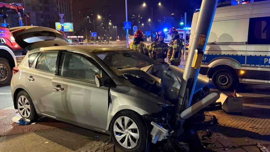 Kierujący samochodem osobowym marki toyota zjechał z drogi i uderzył w słup sygnalizacji świetlnej. Pojazdem podróżowało jeszcze jego dziecko i żona, którzy trafili do szpitala na badania.